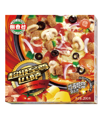 產(chǎn)品介紹:超級至尊匹薩——匹薩最有人氣的經(jīng)典口味!牛肉腸、五香肉、培根,搭配蘑菇、洋蔥、青椒等,如此豐盛的餡料,佐以正宗的披薩醬、奶味濃郁的優(yōu)質(zhì)進口芝士,口口都是令人滿足的好滋。 工藝:半制成品 規(guī)格(g):100g/200g 包裝規(guī)格:1片/盒 箱規(guī):40盒/30盒/箱
