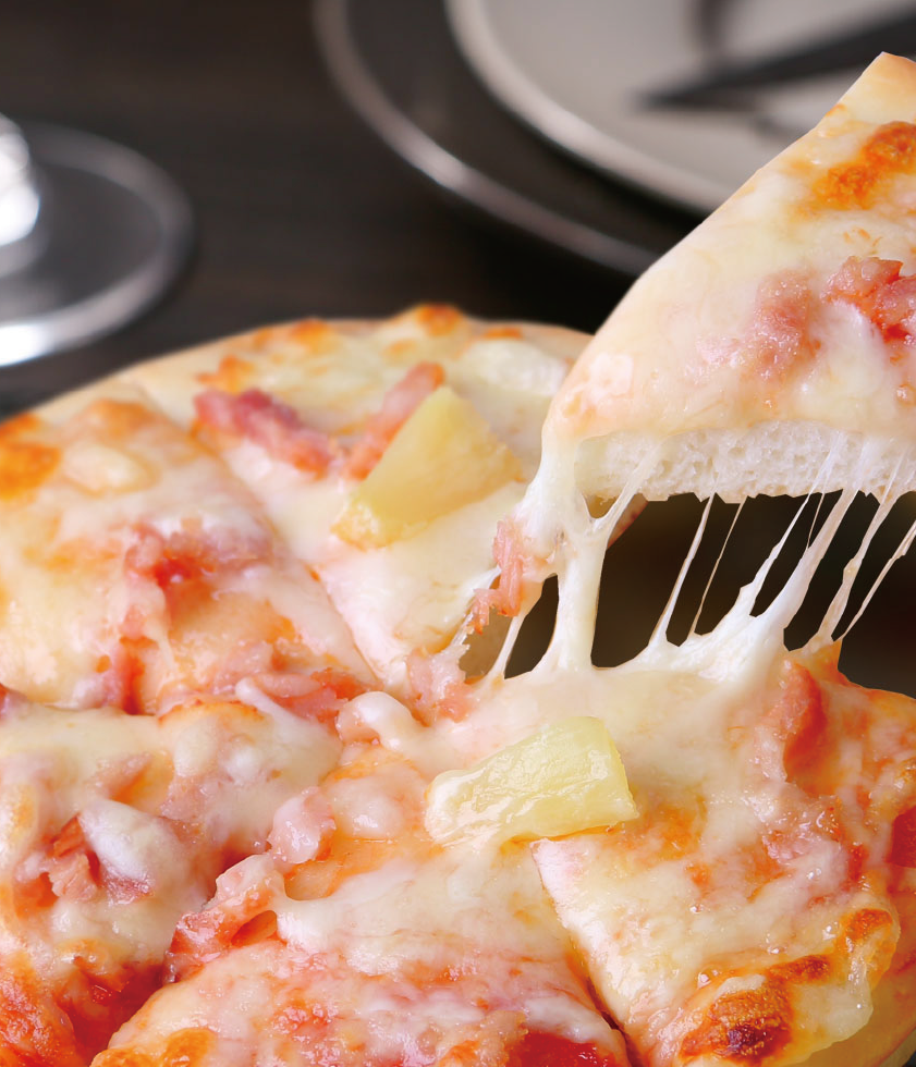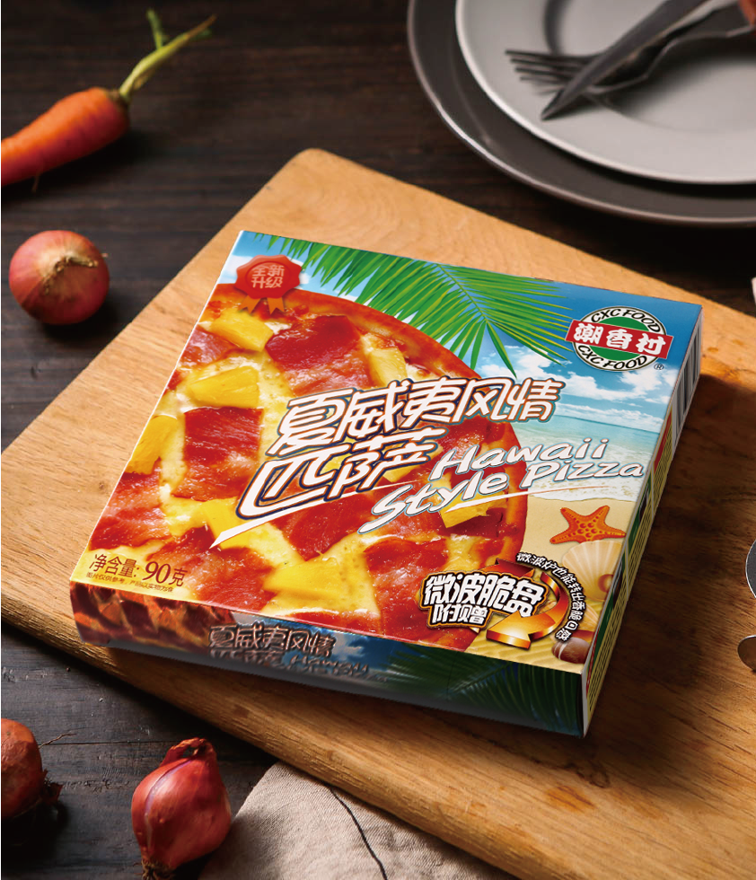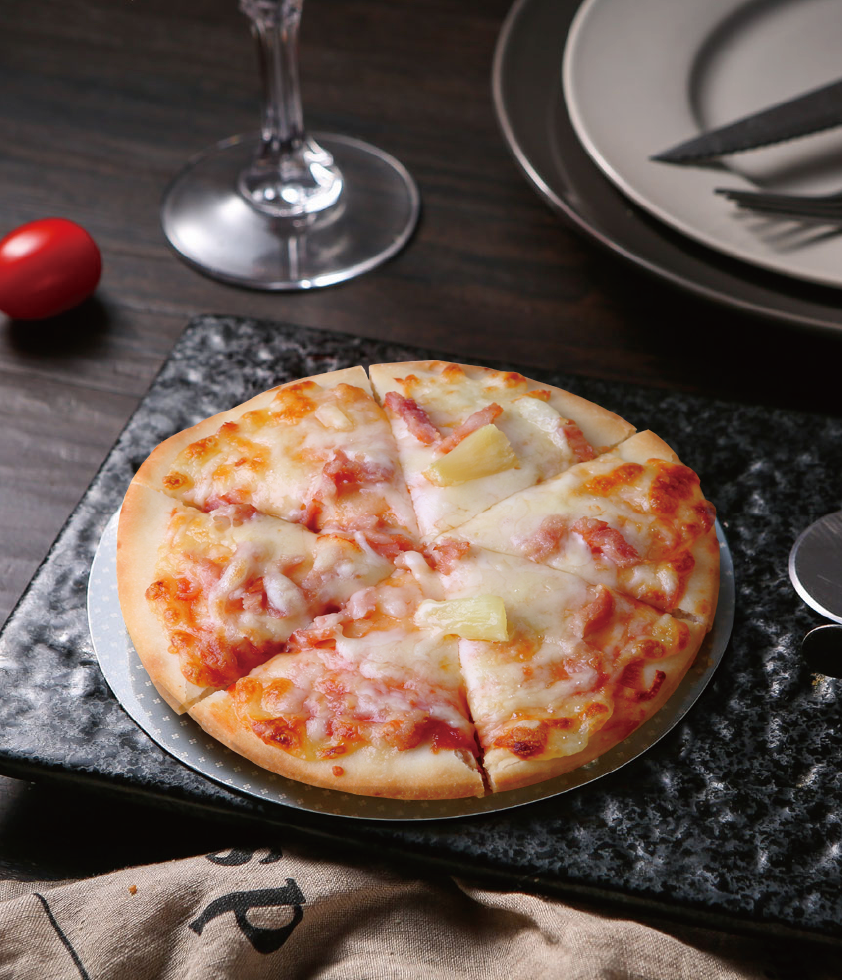 產(chǎn)品介紹:夏威夷風(fēng)情匹薩——酸酸甜甜、清爽可口的菠蘿,和熏制入味、肥瘦得當(dāng)?shù)呐喔谌槔蚁銤獾奈兜赖囊r托下,演繹出了這款經(jīng)典口味的匹薩。