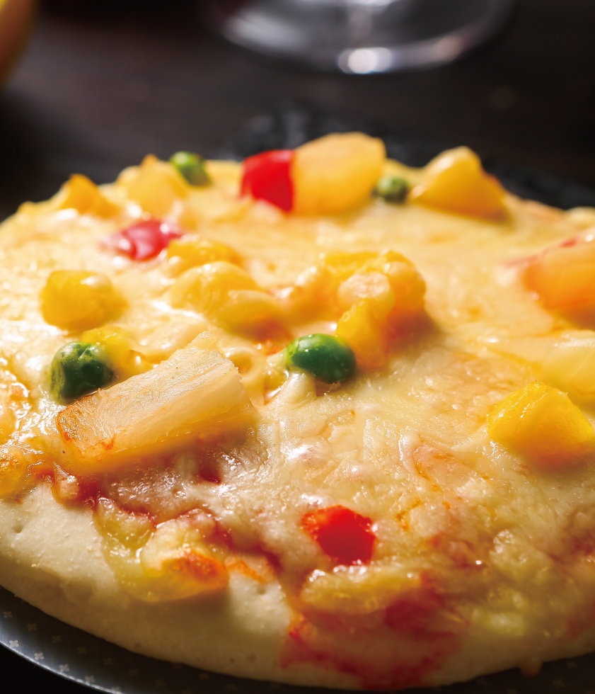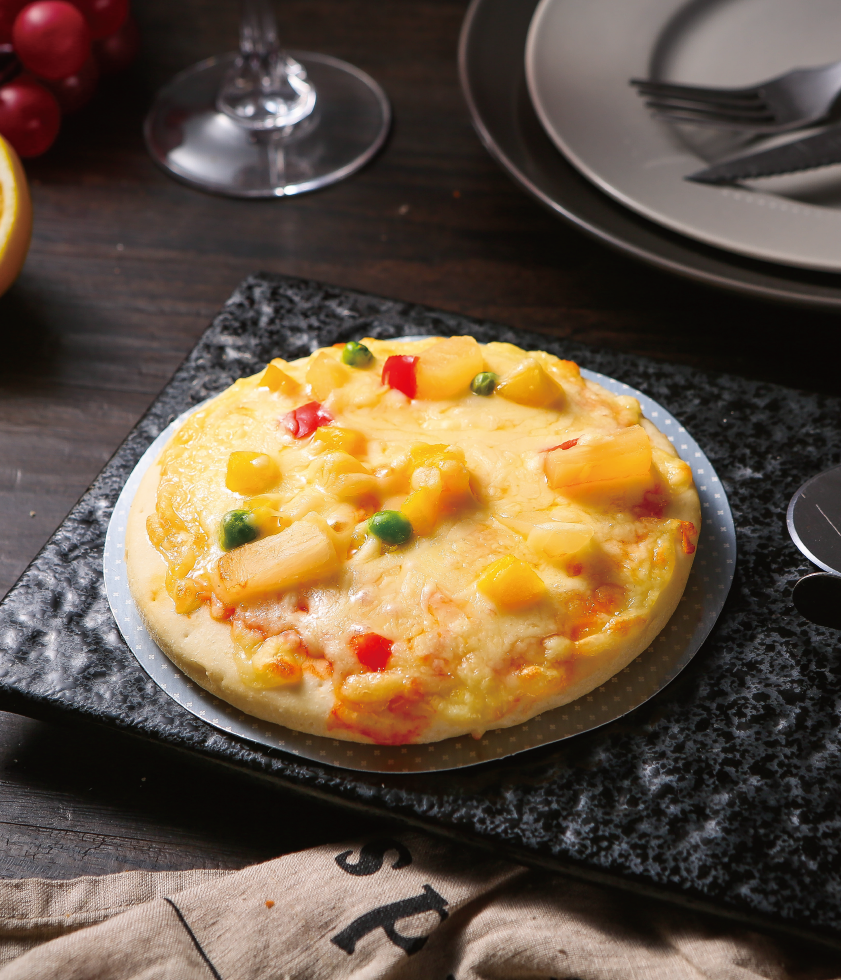 產(chǎn)品介紹:熱帶風(fēng)暴水果匹薩——蜜桃、菠蘿、蒟蒻等等各種鮮脆多汁的水果,與番茄醬的酸甜、乳酪的濃郁交織在一起,交錯(cuò)的甜味和豐富營(yíng)養(yǎng)帶來(lái)幸福元?dú)獾脑绮托赂拍睢?/p>