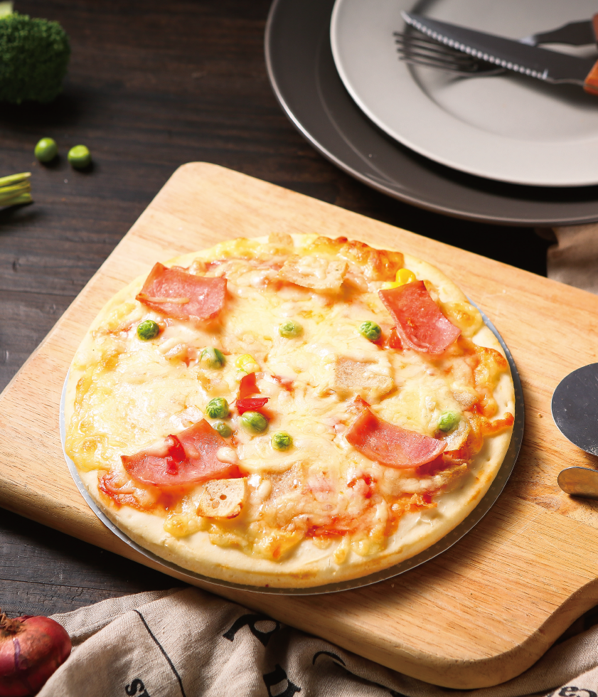 產(chǎn)品介紹:肉香匹薩——肉食主義者的心頭好!火腿、午餐肉,搭配青豆、洋蔥、紅椒、玉米,佐以酸甜可口的番茄醬,和奶香濃郁的芝士,無(wú)肉不歡,十足享受 。 工藝:半制成品 規(guī)格(g):120g 包裝規(guī)格:1片/盒 箱規(guī):40盒/箱